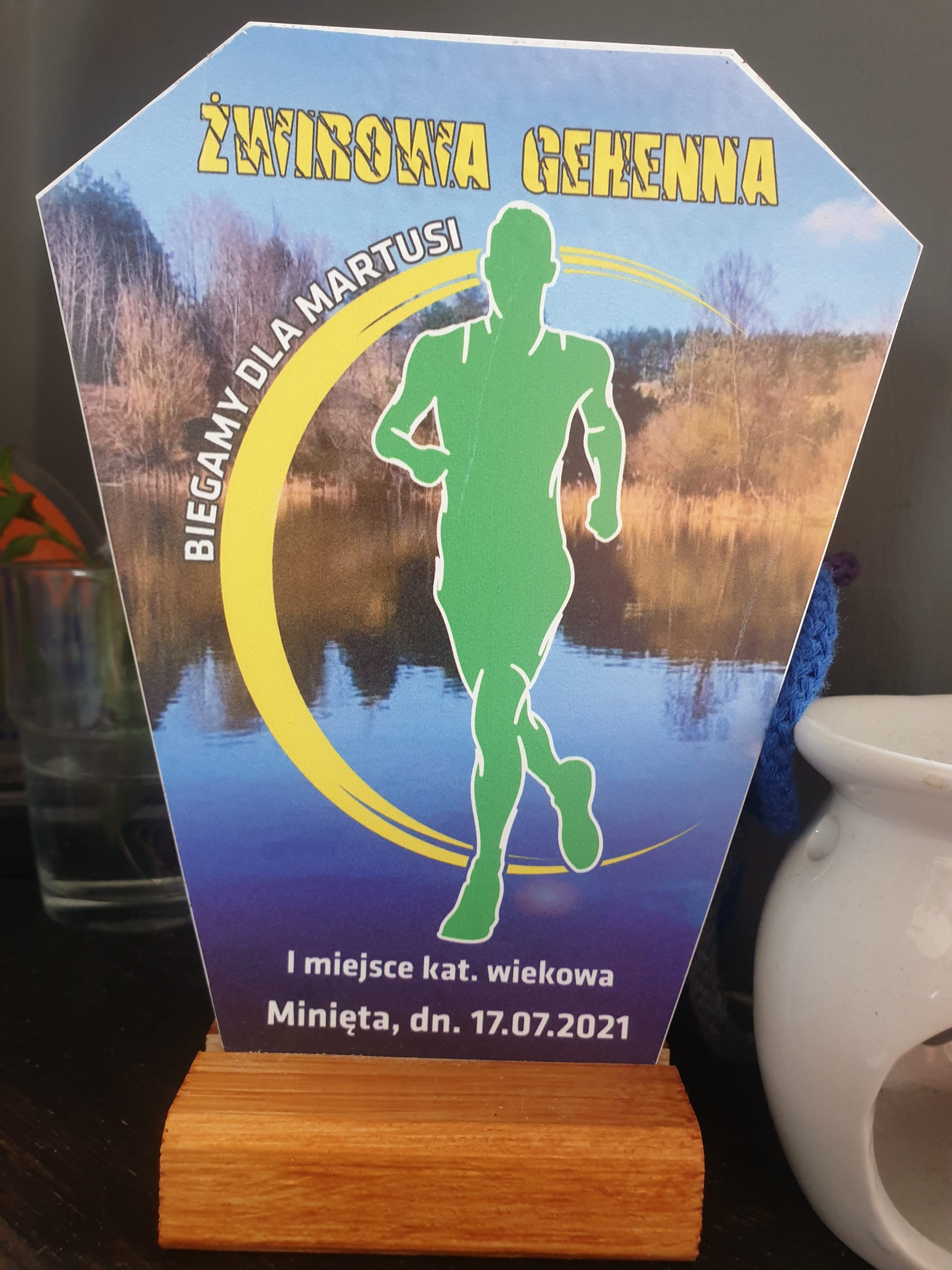 W biegu tym zajęłam 1 miejsce w kategorii wiekowej K40+ i 4 w klasyfikacji ogólnej kobiet. Byłam bardzo zaskoczona. Nie sądziłam, że czas w jakim pokonałam te 5 km 400 metrów może przynieść mi jakiekolwiek miejsce. A jednak... nie tylko ja czułam górki i ten żar z nieba 😉 Jestem bardzo zadowolona, tym bardziej, że 7 dni wcześniej przebiegłam prawie 84 km, a trzy dni wcześniej przyjęłam drugą dawkę szczepienia. Moje ciało jeszcze nie zdążyło się zregenerować, a mimo to potrafiło pięknie polecieć. Będzie jeszcze ze mnie mistrzyni, teraz w to wierzę.