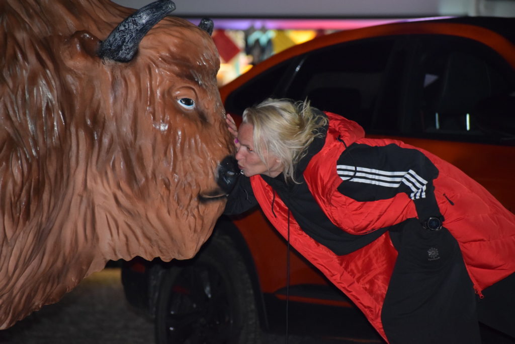 Całus z żubrem na dobranoc przed startem na szczęście...