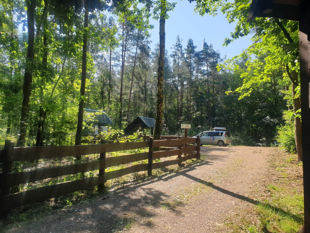 Dojechaliśmy do parkingu leśnego. Piękne miejsce. Może nie jest jakieś szczególne, ale dla nas wystarczająco dobre. Jest wszystko to, czego potrzebujemy. Cisza, spokój, las, przyroda, ławeczki…