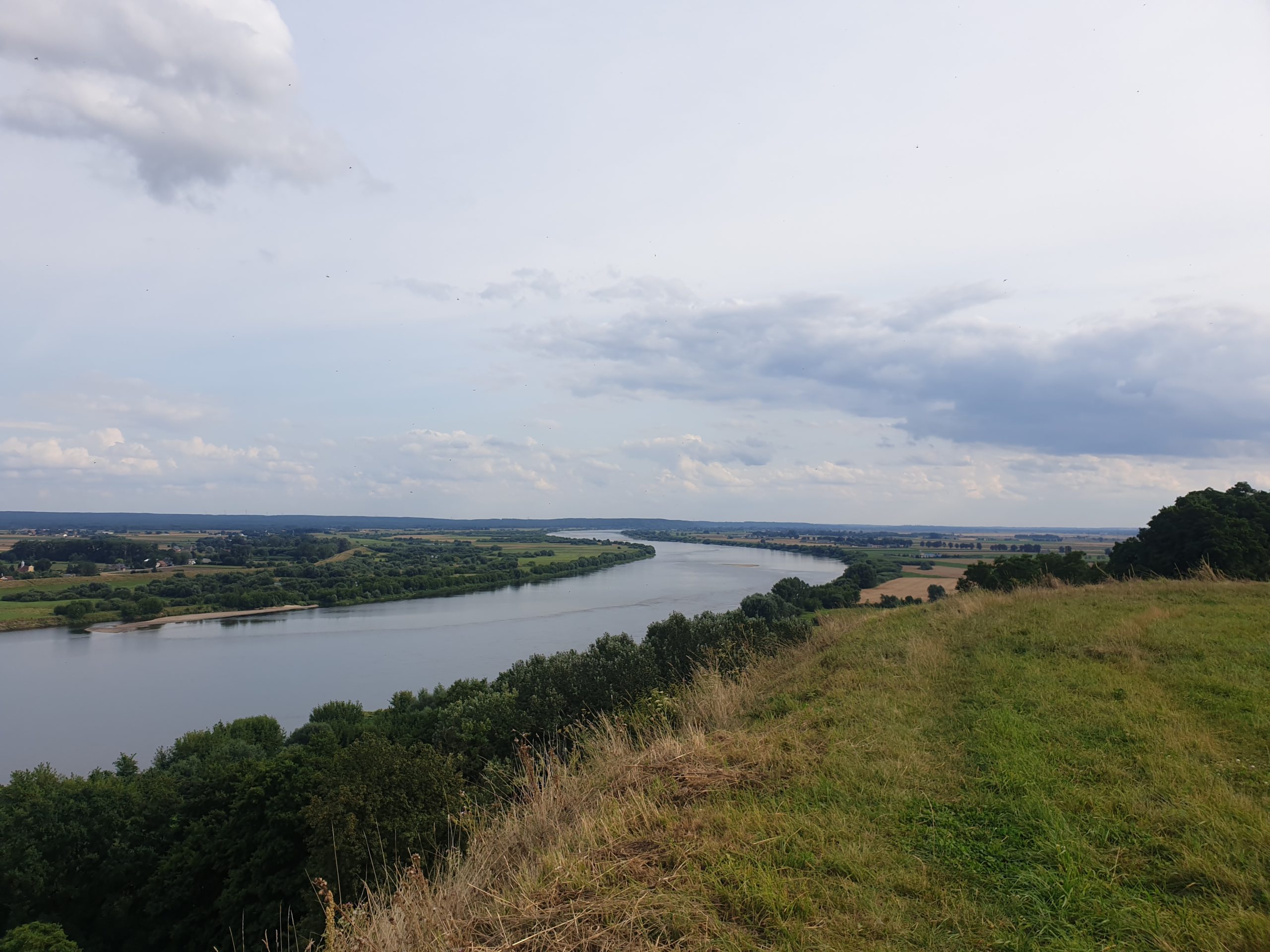 Ruszyliśmy w dalszą podróż naszą trasą. Niestety daleko nie zajechaliśmy. Nowe nie chciało nas wypuścić. Według mapy nad Wisłą znajdował się Szlak Dolnej Wisły, którym mieliśmy jechać. Niestety w praktyce nie można było nim nie tylko przejechać, ale nawet przejść. No, chyba, że ktoś miałby kosiarkę, ewentualnie maczetę, aby utorować sobie drogę. Ponieważ jesteśmy uparci staraliśmy się znaleźć inną drogę do szlaku. I już prawie odnieśliśmy sukces, gdy ponownie chaszcze uniemożliwiły nam dalszą podróż. Postanowiliśmy więc zmienić trasę i pojechaliśmy drogą 91 (dawną 1) do punktu widokowego w Dużym Wiośle. Aby dostać się do samej wieży widokowej należy pokonać niezbyt długi i niezbyt stromy podjazd. Uważam, że warto wydać tą odrobine energii. Widok na Wisłę jaki rozpościera się z wieży jest jednym z piękniejszych jakich doświadczyłam. Kilka zdjęć, trochę wygłupów i wróciliśmy na parking do samochodu.