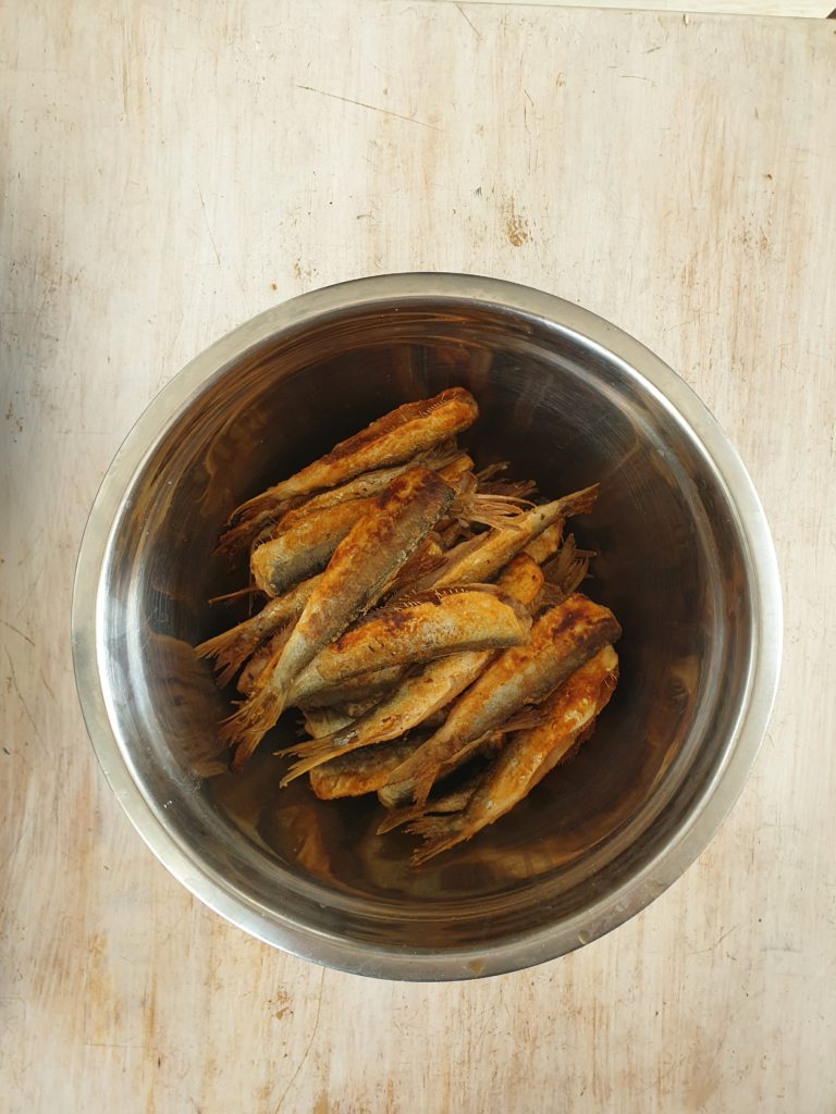 Pozwól śledziom ociec z nadmiaru wody . Ja na kilkanaście minut zostawiam je w durszlaku. Następnie dopraw je solą i pieprzem z obu stron i w środku też 😉